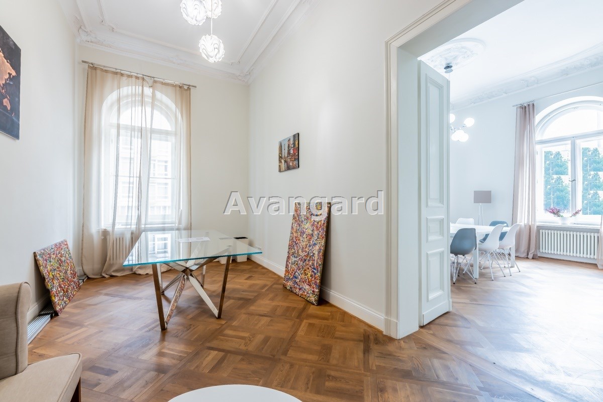 Eleganckie sztukaterie sufitowe, piękne rozety, stylowe wysokie drzwi dwuskrzydłowe lub pojedyńcze drzwi z naświetlami, duża ilość skrzynkowych okien ze stylowymi klamkami, przepiękny olejowany parkiet, wysokie białe listwy przypodłogowe, ściany malowane w modnym dyskretnym kolorze.