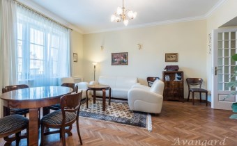 Oferowany apartament znajduje się na drugim piętrze budynku. Zachowany oryginalny, przedwojenny układ mieszkania z nieznacznymi zmianami dla podniesienia komfortu użytkowania. Wyróżnia się bardzo praktycznym rozkładem pomieszczeń, dużą liczbą okien z ekspozycją na trzy strony świata oraz tarasem. Wszystkie pomieszczenia ustawne, o bardzo dobrych proporcjach. Wysokość mieszkania 3 m.
