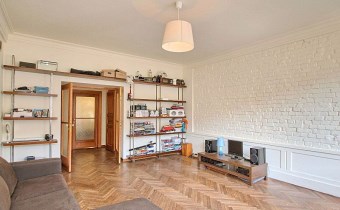W mieszkaniu dużo drewnianych elementów. Stary oryginalny parkiet, oryginalna stolarka drzwiowa, która oczyszczona z farby podbija klimat mieszkania urodą oryginalnego drewna.