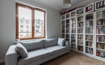 Duża ilość wysokich okien w części dziennej, pięknie doświetla wnętrze mieszkania oraz potęguje efekt wysokości i przestrzeni. Dodatkowo drzwi balkonowe w jednej z sypialni. Wszystkie okna w mieszkaniu drewniane.